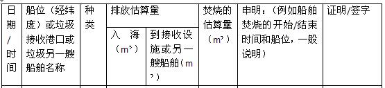 “.3 每次焚燒記錄須包含日期、時(shí)間、焚燒開(kāi)始和結(jié)束時(shí)的船位(船舶經(jīng)緯度)、被焚燒垃圾的分類、每一類被焚燒的垃圾的估算量(以立方米計(jì));