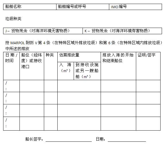 (對(duì)海洋環(huán)境有害物質(zhì)和垃圾記錄簿格式)