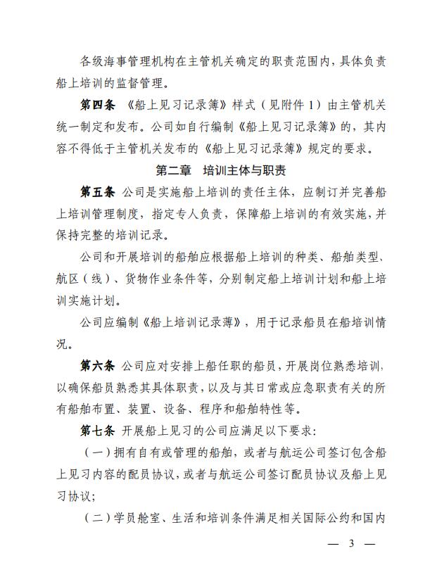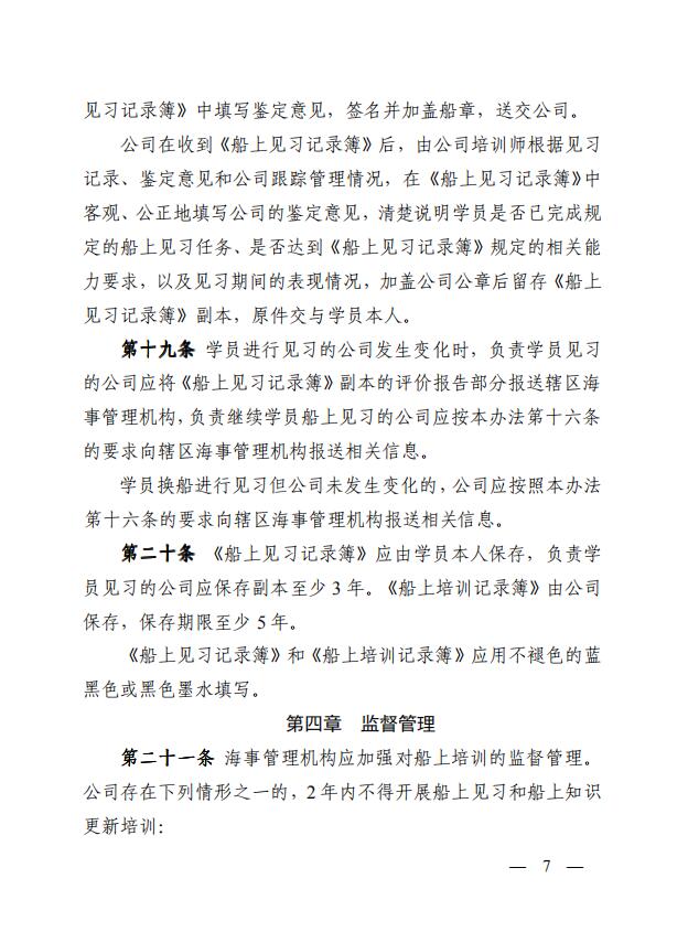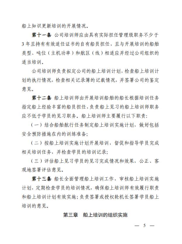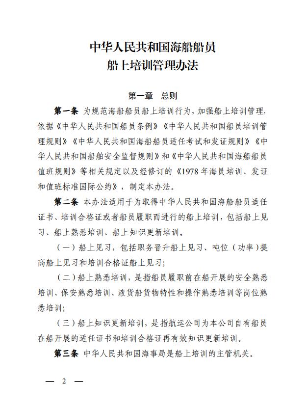 中華人民共和國海事局關(guān)于印發(fā)《中華人民共和國海船船員船上培訓(xùn)管理辦法》的通知