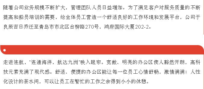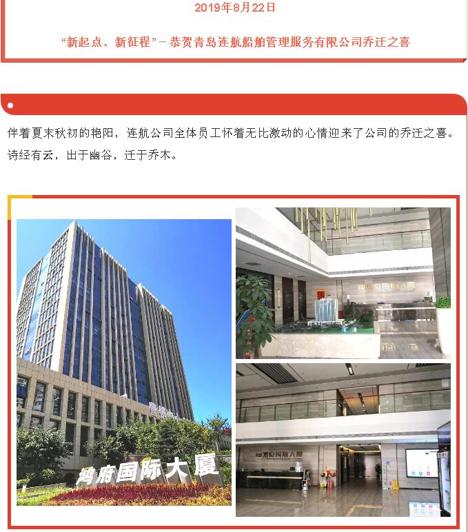 “新起點(diǎn)、新征程”-恭賀青島連航船舶管理服務(wù)有限公司喬遷之喜